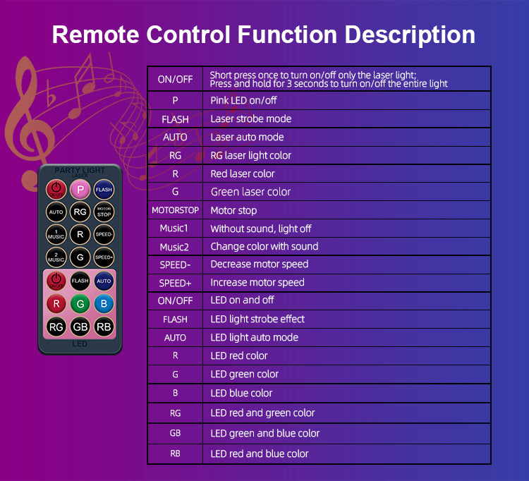 Party light effect:The DJ disco light has three work mode: Sound Activated, Auto, and Flash. Its laser and disco ball are combined in different ways, and it can present up to dozens of effects. You can combine your favorite effects according to your preferences.