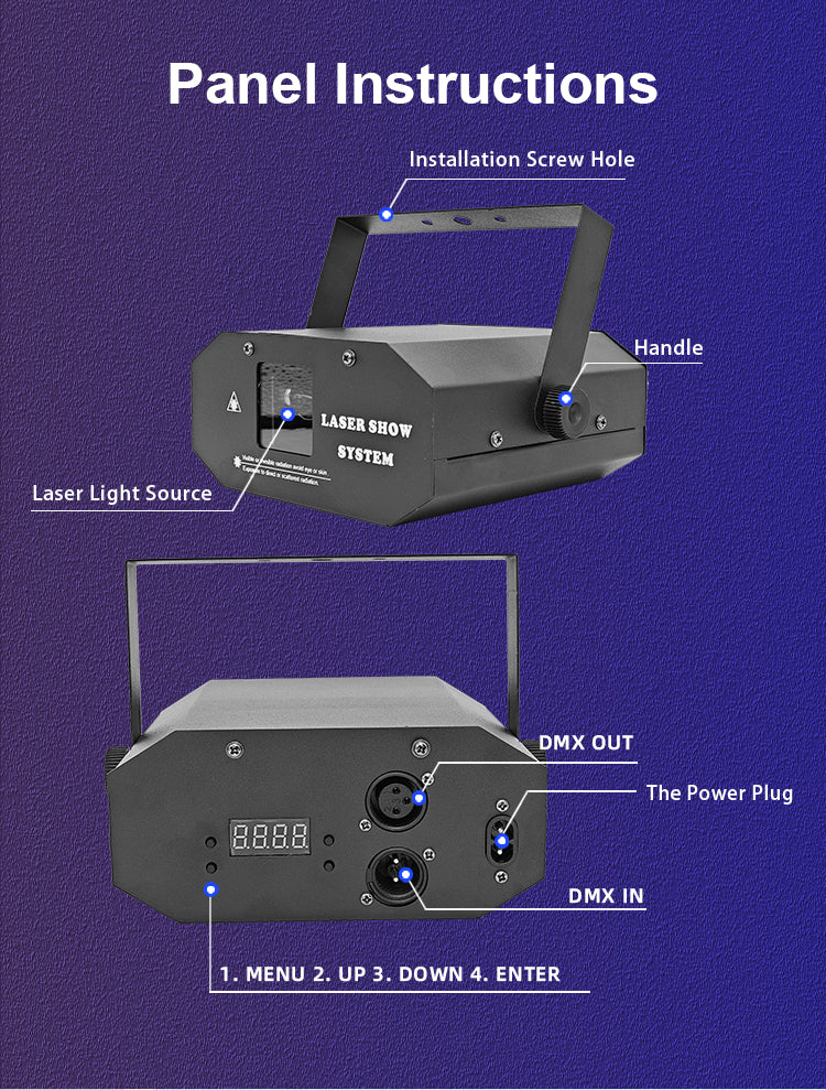 【Marvelous Full Color Visual Effect】You not just can see red, green and blue colors of this full color dj lazer light, but also other different color combinations like yellow, indigo, purple, white etc. Colorful marvelous dynamic beam and funny animated graphics will easily bring you a unforgettable show.